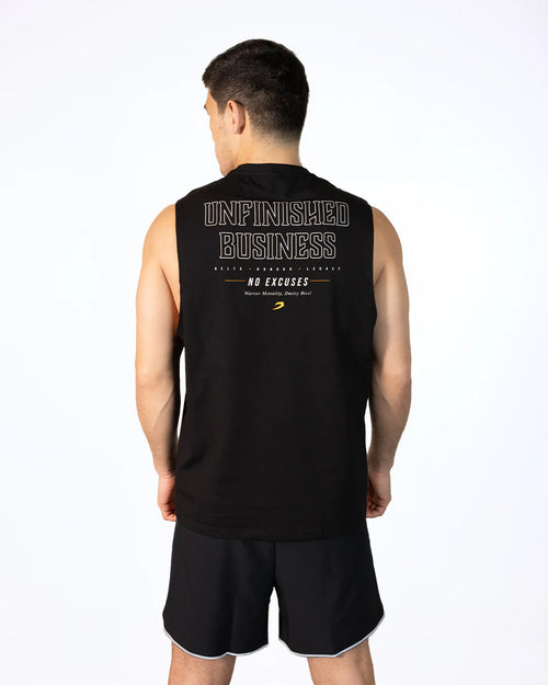 Belts. Honour. Legacy. The Bivol x BOXRAW muscle tank is crafted from a durable stretch cotton blend, offering a relaxed fit. Finished with the bold 'UNFINISHED BUSINESS' graphic across the back.