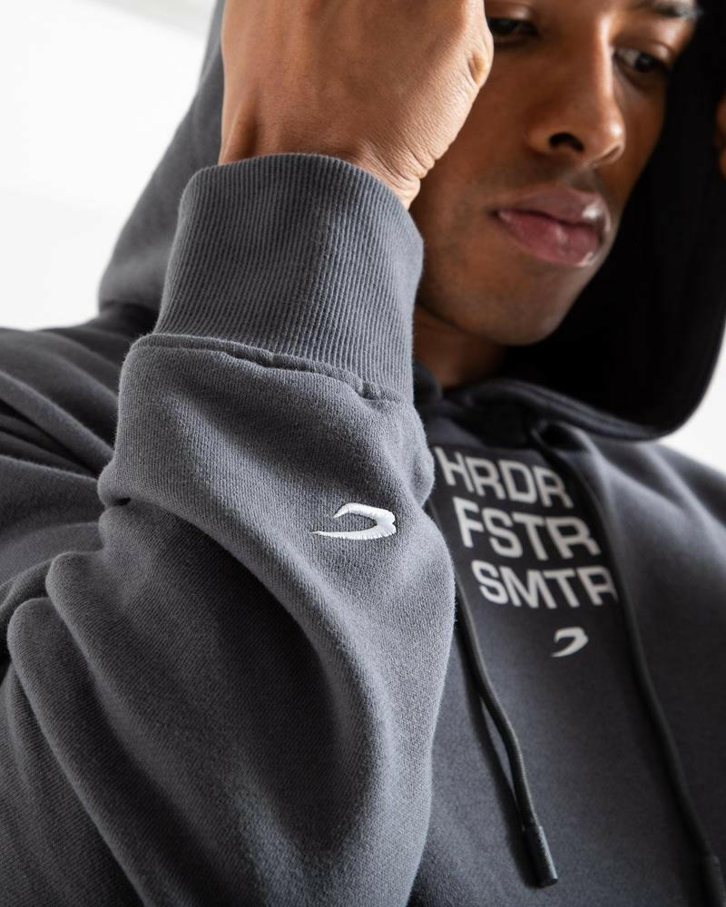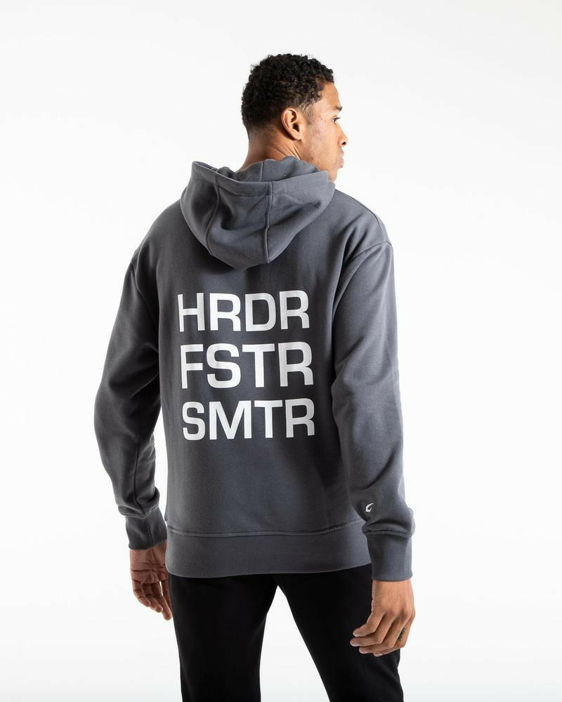 HRDR FSTR SMTR UNISEX HOODIE - CHARCOAL